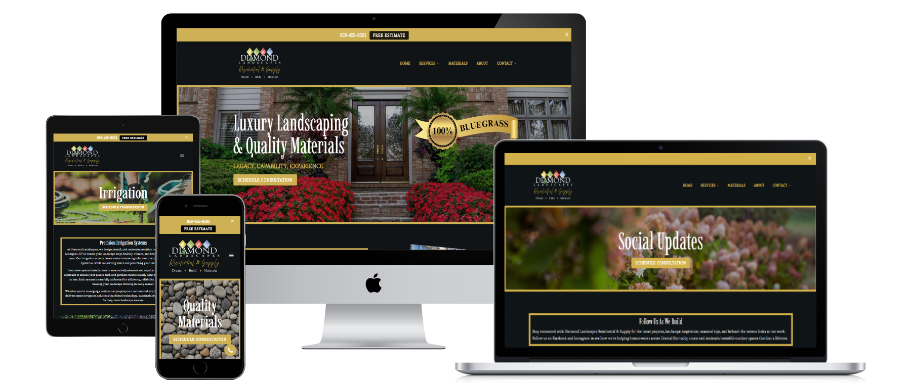 Diamond Landscapes, a client of Joker Business Solutions, sought to expand its business from commercial landscaping to include residential landscaping. Targeting its business to larger homes with expansive acreage, Diamond Landscapes wanted a website that had a luxurious feel that matched their provided brochure. Additionally, they aimed to highlight their new location, which will offer materials for purchase. The result was an elegant website that showcased their new business and promoted their offerings. To enhance user engagement, Joker integrated calls to action on each page along with the business phone number for convenient booking. Beyond website development, Joker is working with Diamond Landscapes to optimize their local listings to increase visibility and drive web traffic to their new residential platform.